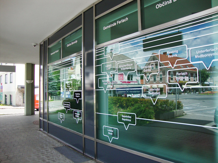 Im Zuge der Renovierung und Neukonzeption des Schalterbereichs der Posojilnica Bank in Borovlje/Ferlach lädt section.a fünf Künstler_innen zu einem einstufigen Kunst-am-Bau-Wettbewerb ein. Wettbewerbsgegenstand ist eine dauerhafte künstlerische Intervention für den unmittelbaren Außenraum der Bank und damit den öffentlichen Raum. Inhaltlicher Ausgangspunkt ist die zweisprachige Topografie (Slowenisch/Deutsch) der Gemeinde Borovlje/Ferlach, bestehend aus 60 Ortschaften, die den unmittelbaren Wirkungsradius der Bank widerspiegeln. Sie soll in einer sichtbaren künstlerischen Form eine Übersetzung finden.